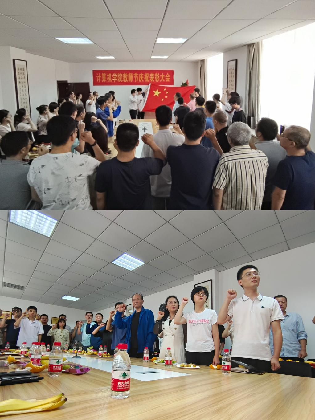 仪式上,大家全体起立,奏唱国歌,公司全体教师面向鲜艳的五星红旗,在经理杨俊清的带领下,举起右拳宣读誓词:我是一名光荣的人民教师,深知新时代赋予的任务和使命,我庄严宣誓:忠于党的教育事业,贯彻党的教育方针,履行教师的神圣职责,践行“德能日新刚健有为”的校训,弘扬“严谨、求实、勤奋、创新”的优良校风,恪守新时代高校教师十项准则,做有理想信念、有道德情操、有扎实学识、有仁爱之心的好老师,爱国守法、敬业爱生、教书育人、严谨治学、服务社会、为人师表,为员工德智体美劳全面发展奉献智慧与力量,为党和人民的教育事业而努力奋斗!
