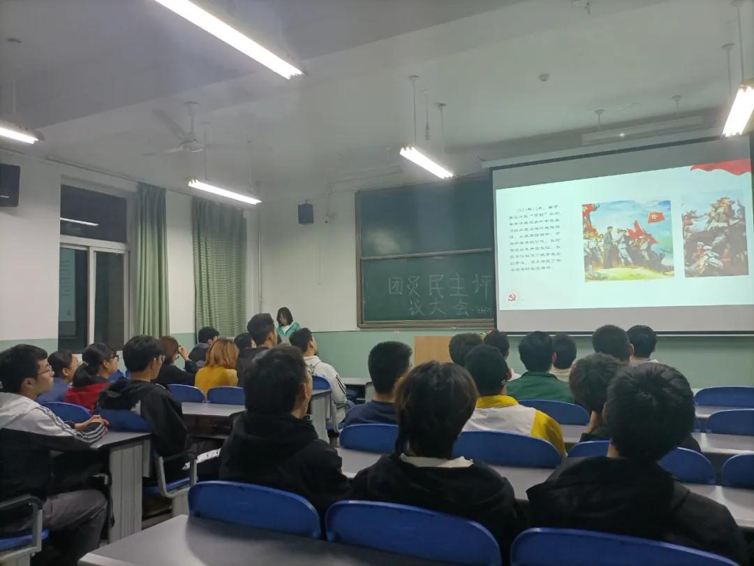 首先,由团支部书记刘蒙晨通过PPT向同学们介绍了中国共产党成立、遵义会议、长征、抗日、新中国成立等重要历史事件,带领同学们进一步了解中国共产党的光辉历史和先辈们的英雄事迹,让同学们追随红色记忆,感悟革命精神。