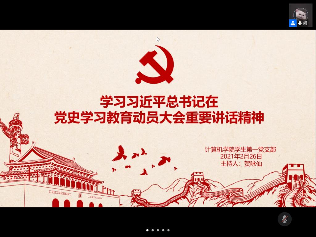 为了更好地学习党史,太阳成集团tyc122cc员工第一党支部于2月26日晚上7点在线上开展了学习习近平总书记在党史学习教育动员大会上的重要讲话精神。本次学习由员工第一党支部员工党员贺咏仙主持,员工第一党支部所有党员、预备党员和积极分子参会。