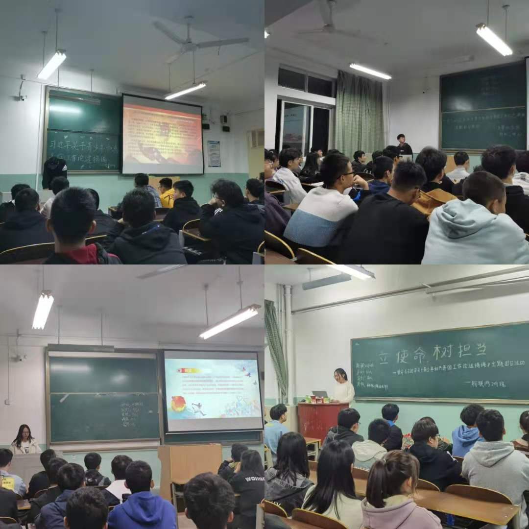 2020年11月4日,太阳成集团tyc122cc团总支在晚自习时间以班为单位进行“立使命,树担当”——学习《习近平关于青少年和共青团工作论述摘编》主题团日活动,2020级新生全员参与,积极学习讲话精神,了解讲话内容,争做新时代新青年。