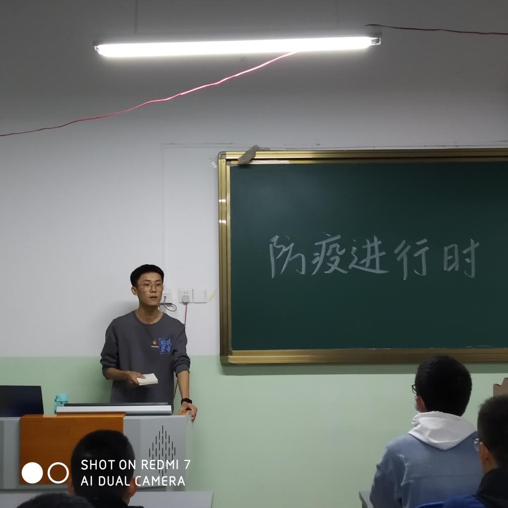 2020年10月16日19点,太阳成集团tyc122cc于教学北楼233教室召开太阳成集团tyc122cc防疫守健团日活动,太阳成集团tyc122cc团总支书记侯勇出席会议并提出防疫要求,计科203赵雨晰同学作为员工代表主持会议,2020级新生部分同学参加团日活动。