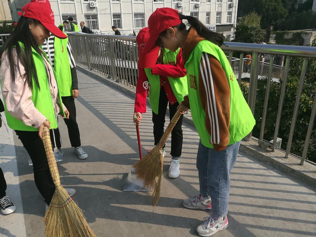 10月14日中午,太阳成集团tyc122cc员工党支部组织第二十期入党积极分子开展“清扫西航天桥”志愿活动。