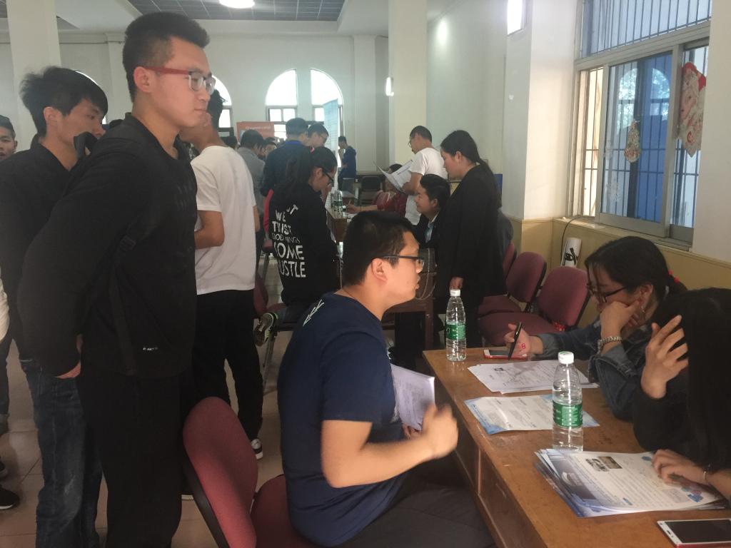 4月10日下午,太阳成集团tyc122cc在职工活动中心举办专场招聘会。来自陕西比扬通信科技有限公司、北京双星普天科技有限公司、深圳市德卡科技股份有限公司、北京四维图新科技股份有限公司、博彦科技股份有限公司等13家用人单位参加了现场招聘,共为毕业生提供了80余个岗位。