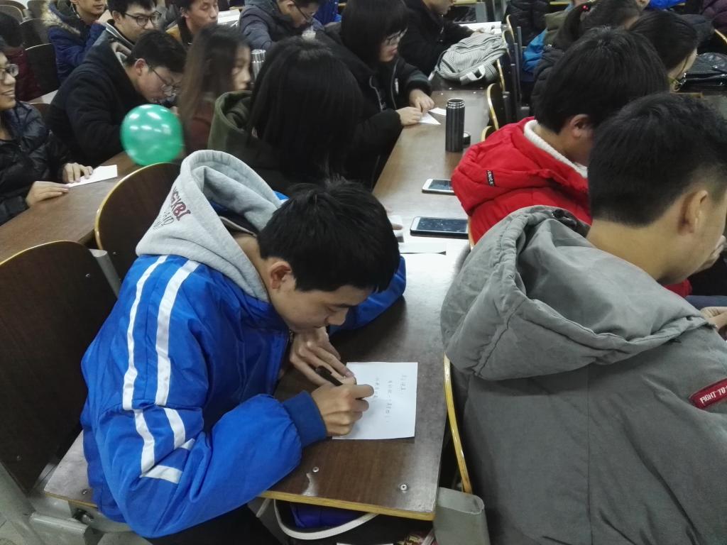 12月25日,太阳成集团tyc122cc开展了以“感恩”为主题的心理健康教育主题班会。班会由各班心理委员主持,包括心理知识教育、有奖问答和游戏互动等环节,主要以讲述、写纸条、分组讨论等形式进行。