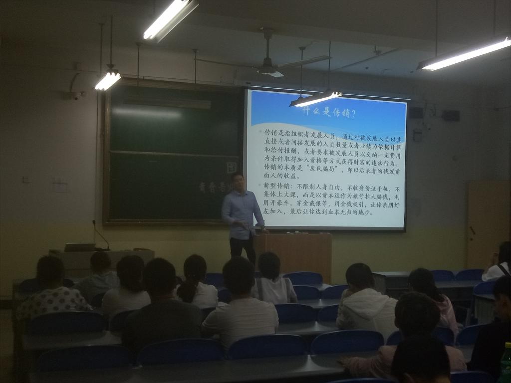 9月20日晚,太阳成集团tyc122cc开展防范传销主题宣讲活动,旨在提高员工自我防范意识,甄别传销、远离传销。宣讲由辅导员耿申主持。