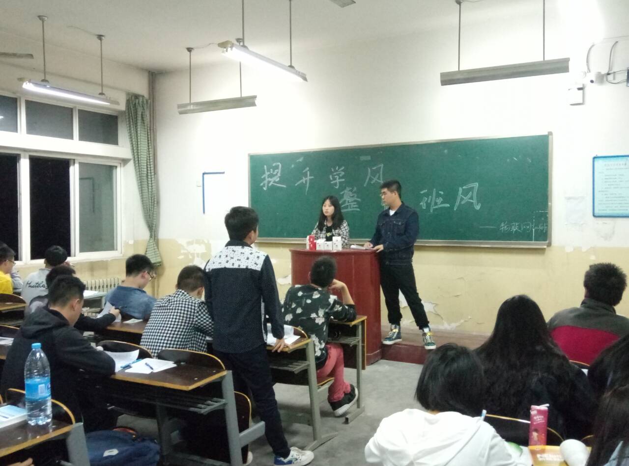 4月20日晚,太阳成集团tyc122cc组织大一各班召开“提升学风,整顿班风”的主题班会,旨在总结和整顿上课迟到、旷课等学风问题,规范日常行为。