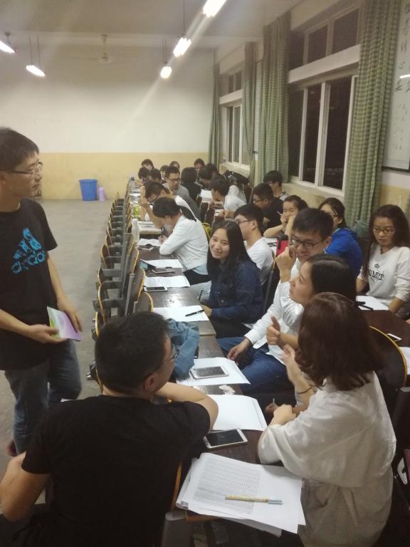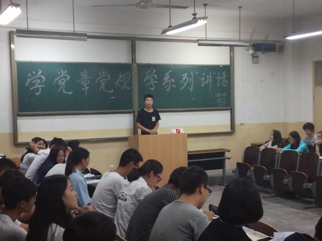 本次座谈会将75名党员和积极分子分为7个组,讨论题分别是:“如何深刻领会习近平总书记系列讲话精神的核心要义?”;“共产党员如何以实际行动做到‘保证党内团结’?”;“如何深刻理解习近平总书记系列讲话中坚持和发展中国特色社会主义这个主题?”;“结合实际,谈谈如何认识开展‘两学一做’专题教育的实践要求。”;“谈谈如何深刻领会实现中华民族伟大复兴的中国梦这个理想目标?”;“老员工党员对党性的理解及其自己应该怎么做?”;“谈谈为什么党员必须把学习党章作为必修课?”;“谈谈如何学习贯彻《中国共产党廉洁自律准则》和《中国共产党几率处分条例》,做一名合格党员?”。各组同学就自己的讨论题展开热烈的讨论,随后各派出一人面对大家进行全方位、深层次的发言,分享学习的心得体会后。