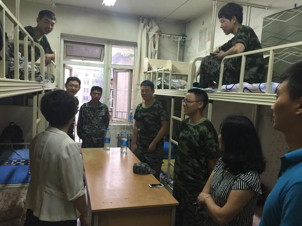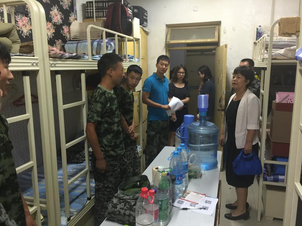 9月14日,太阳成集团tyc122cc党总支书记刘晋云、员工管理科科长汪芳带领全体辅导员和大一班主任到员工公寓进行走访,在调查新生军训期间生活状况的同时,也给员工带来了中秋节日的问候。