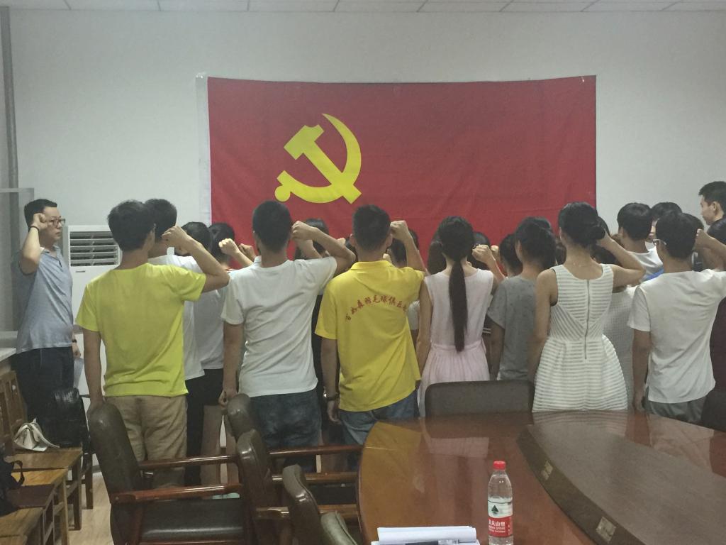 大会开始,全体起立齐唱《国际歌》,紧接着,在米嘉琪老师的带领下,33名新党员面向党旗进行了庄严的宣誓,表达了自己为共产主义理想奋斗终生的决心。