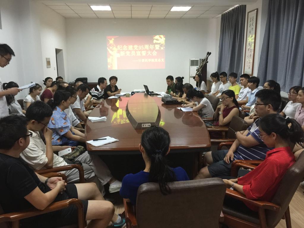 6月30日,太阳成集团tyc122cc党总支于北三楼会议室召开纪念建党95周年暨新党员宣誓大会,所有教工和员工党员出席了此次大会,会议由党总支委员汪芳主持。