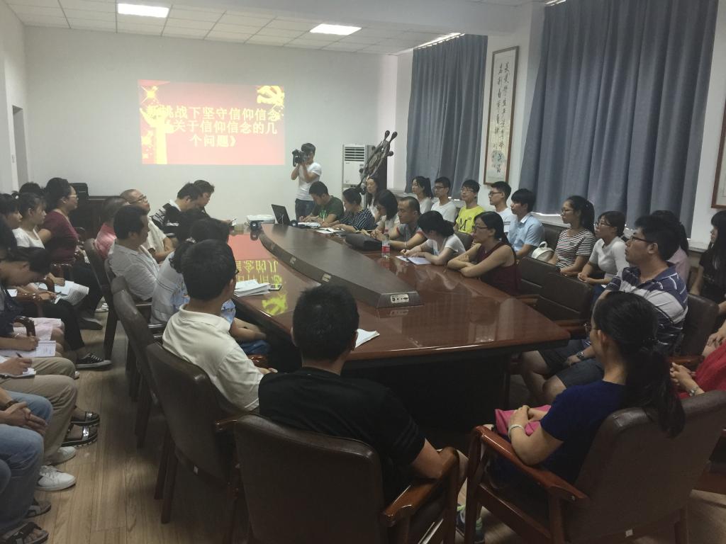 全体党员围绕建党95周年和信仰信念问题进行了座谈和讨论,新党员代表曹永乐、王旭、董静静作了发言,他们表示,作为员工党员应树立远大理想,勇于追求真理,为同学们树立榜样;教工代表米嘉琪、任静、杨俊清谈了自己的认识和体会,他们表示,党员要坚守信仰,加强理论知识学习,将理论应用到学习、生活、工作中,对党忠诚,传道、授业、解惑,发挥党员的先进性。共产党员应牢记誓词,将誓词深入内心,将共产主义作为信仰。