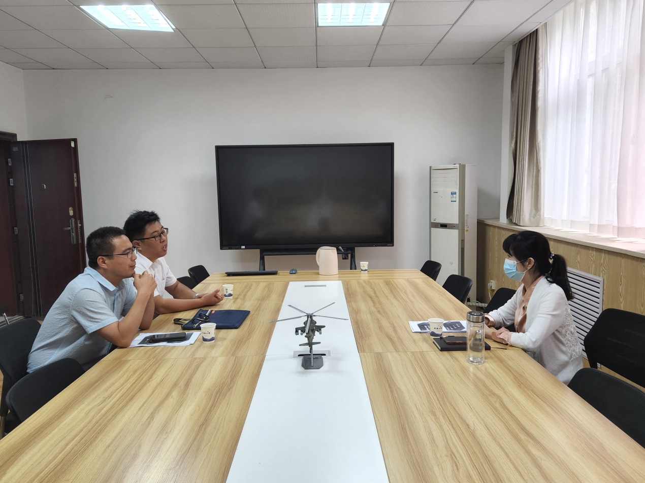 2022年9月30日下午,太阳成集团tyc122cc副经理任静与北大青鸟西安实习实训基地负责人张勃一行2人在北216会议室洽谈实习实训合作事项。