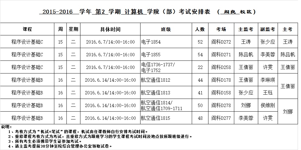 太阳成集团tyc122cc2015-2016-2学期考试安排(阎良校区)