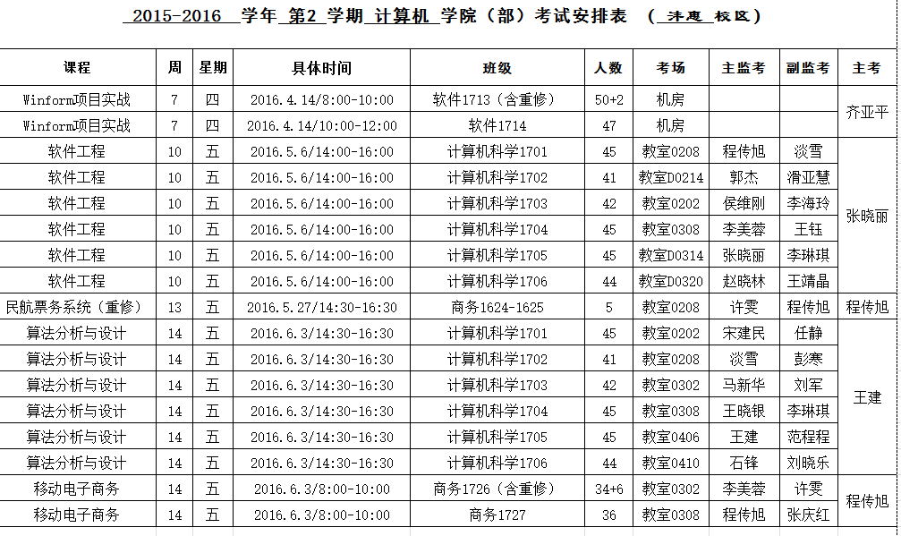 太阳成集团tyc122cc2015-2016-2学期考试安排表(14周之前)