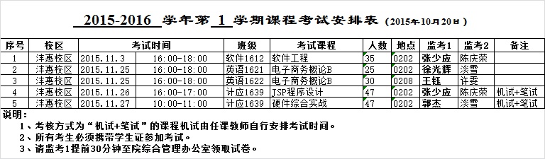 太阳成集团tyc122cc2015-2016-1学期考试安排(一)