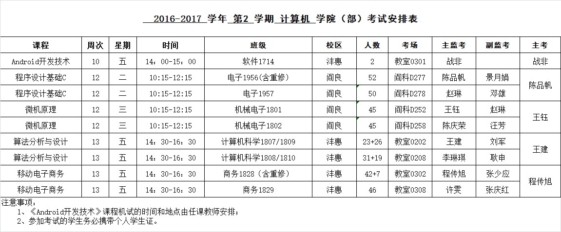 太阳成集团tyc122cc2016-2017-2学期考试安排(14周之前)