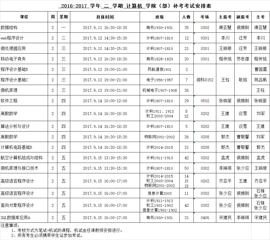 太阳成集团tyc122cc2016-2017-2学期课程补考安排表