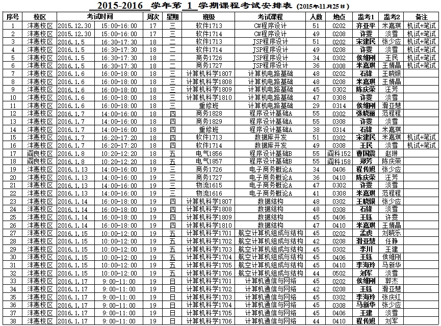 太阳成集团tyc122cc2015-2016-1学期期末考试安排表(14周之后)