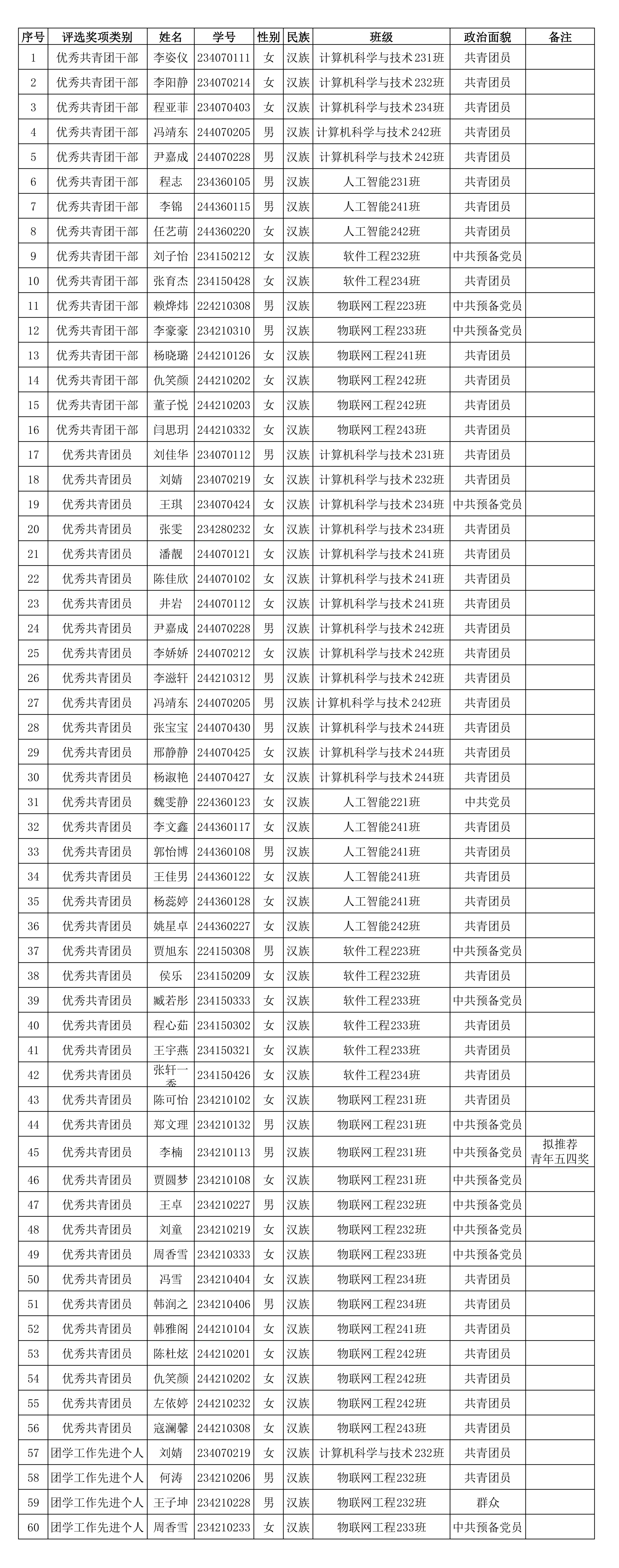 根据《关于开展 2025年度122cc太阳成集团官网 “五四”评选表彰工作的通知》、《122cc太阳成集团官网“五四”评选表彰工作办法》等文件要求,本着公平、公正、公开的原则,经个人申请、团支部推荐、团委审核,现将拟推荐候选名单公示如下: